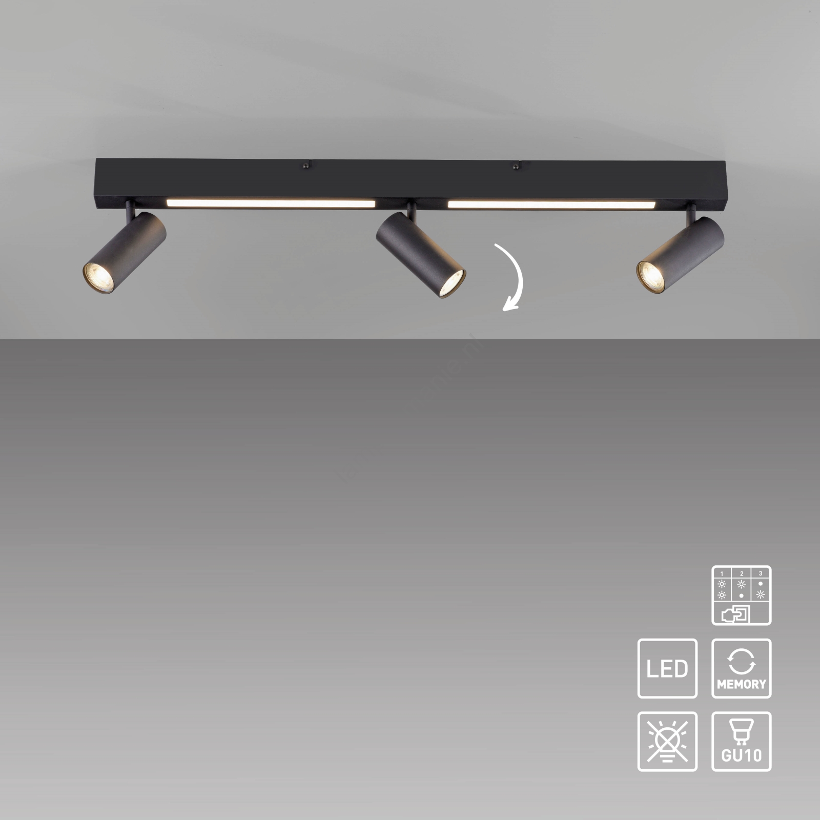 Schöner Wohnen 11794-18 - LED-spot DANTE 3xGU10/10W/230V + LED/14,4W zwart