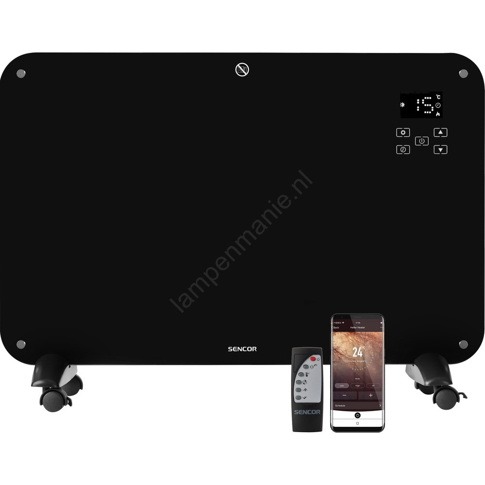 Sencor - Convectieverwarming met LCD display 750W/1500W/230V Wi-Fi Tuya IP24 + zwart + afstandsbediening