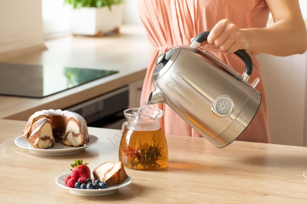• Waterkoker met een thermometer waardoor u de optimale temperatuur voor verschillende soorten thee, koffie, etc. kunt bereiken.