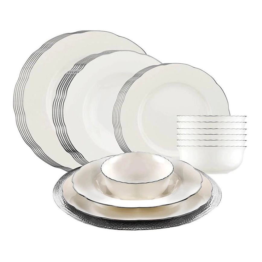 Serveerset 24-delig, wit/zilver, porselein