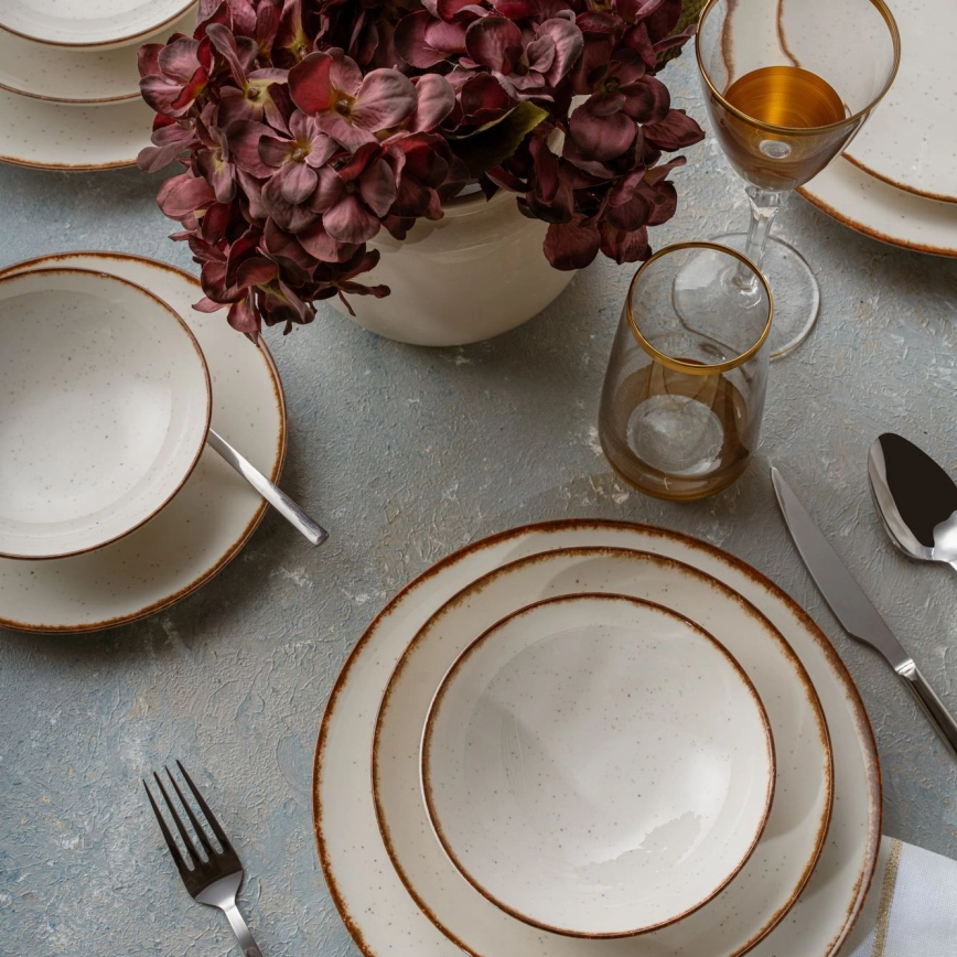 Serviesset 24-delig beige/bruin/porselein