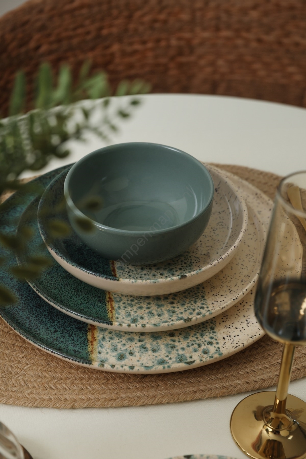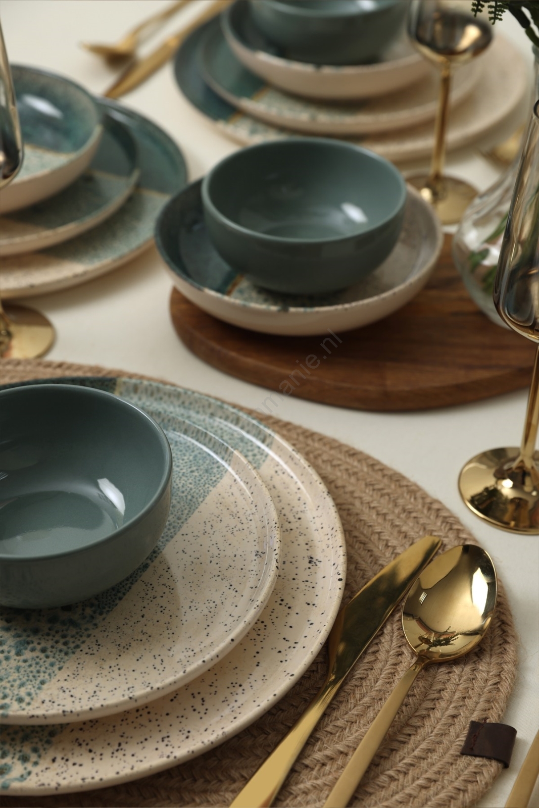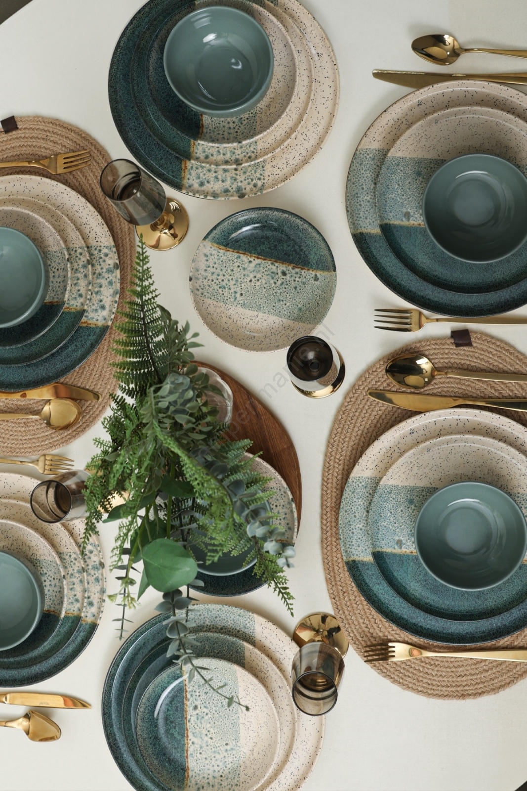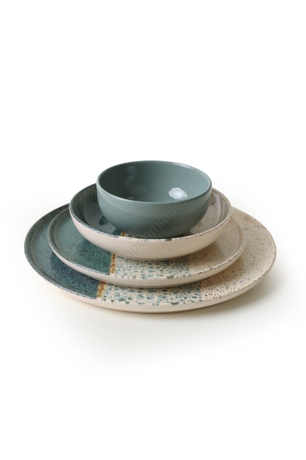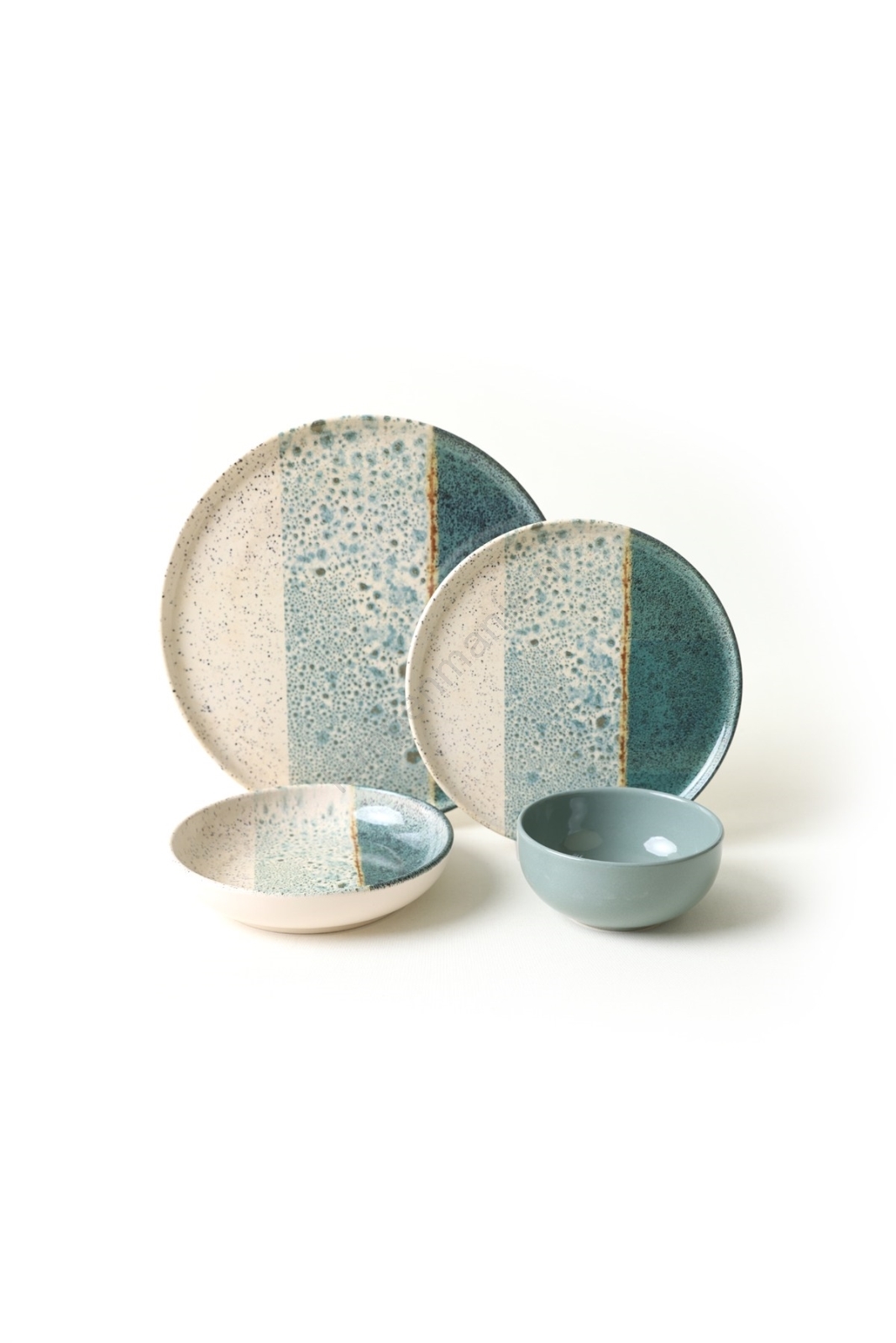 Serviesset 24-delig turkoois/crème/steengoed