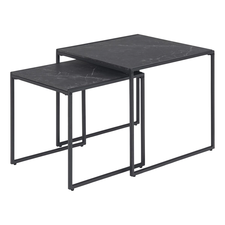 • Dankzij de strakke lijnen, marmerlook en zwarte poedercoating passen de tafels in bijna elke woonkamer.