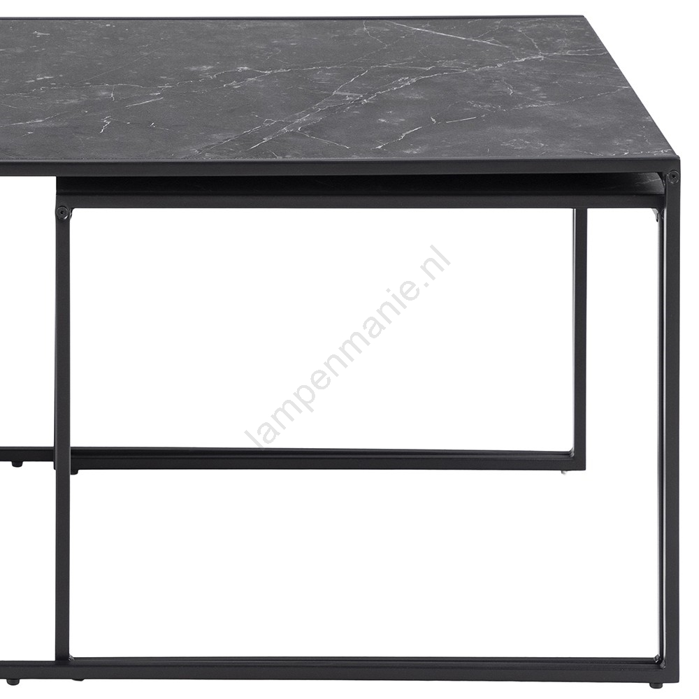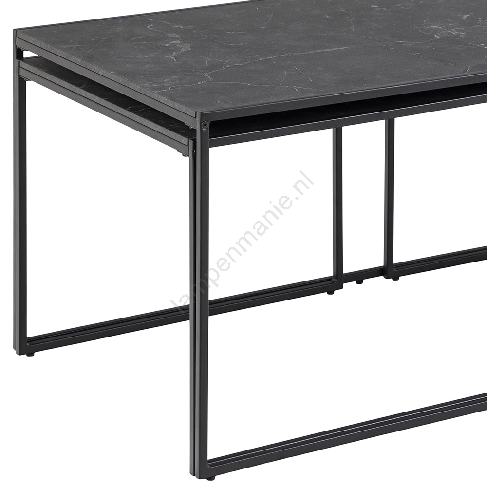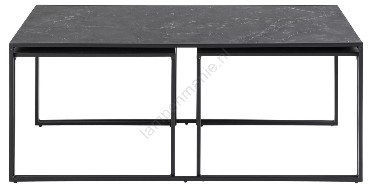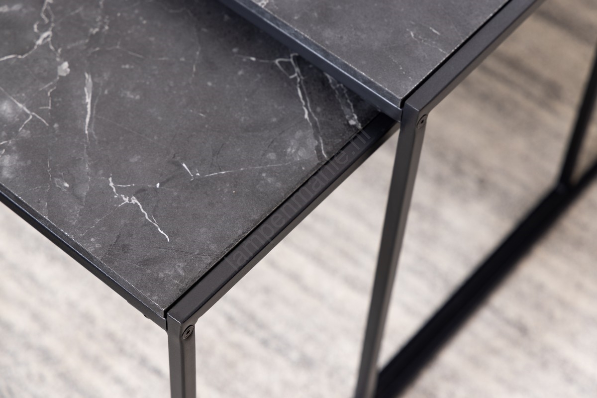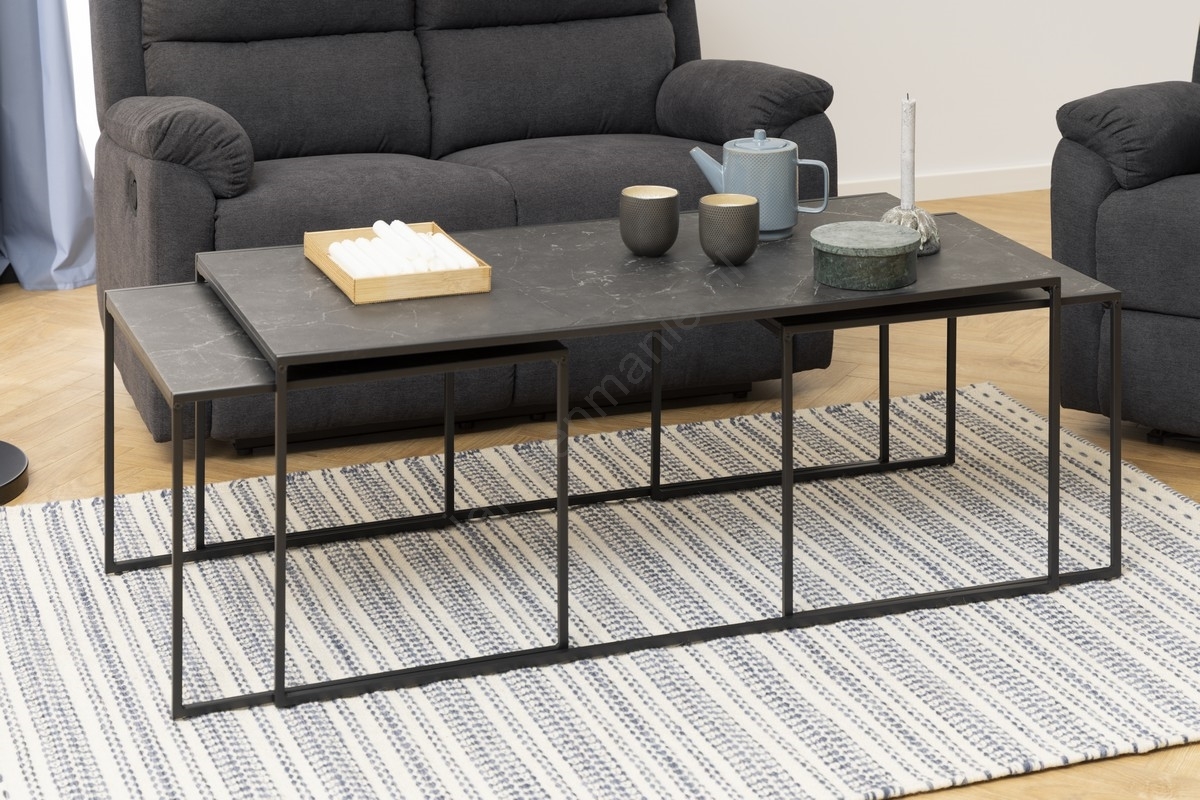 • Dankzij de strakke lijnen, marmerlook en de zwarte poederlak past de set salontafels vrijwel in elk woonkamerinterieur.
