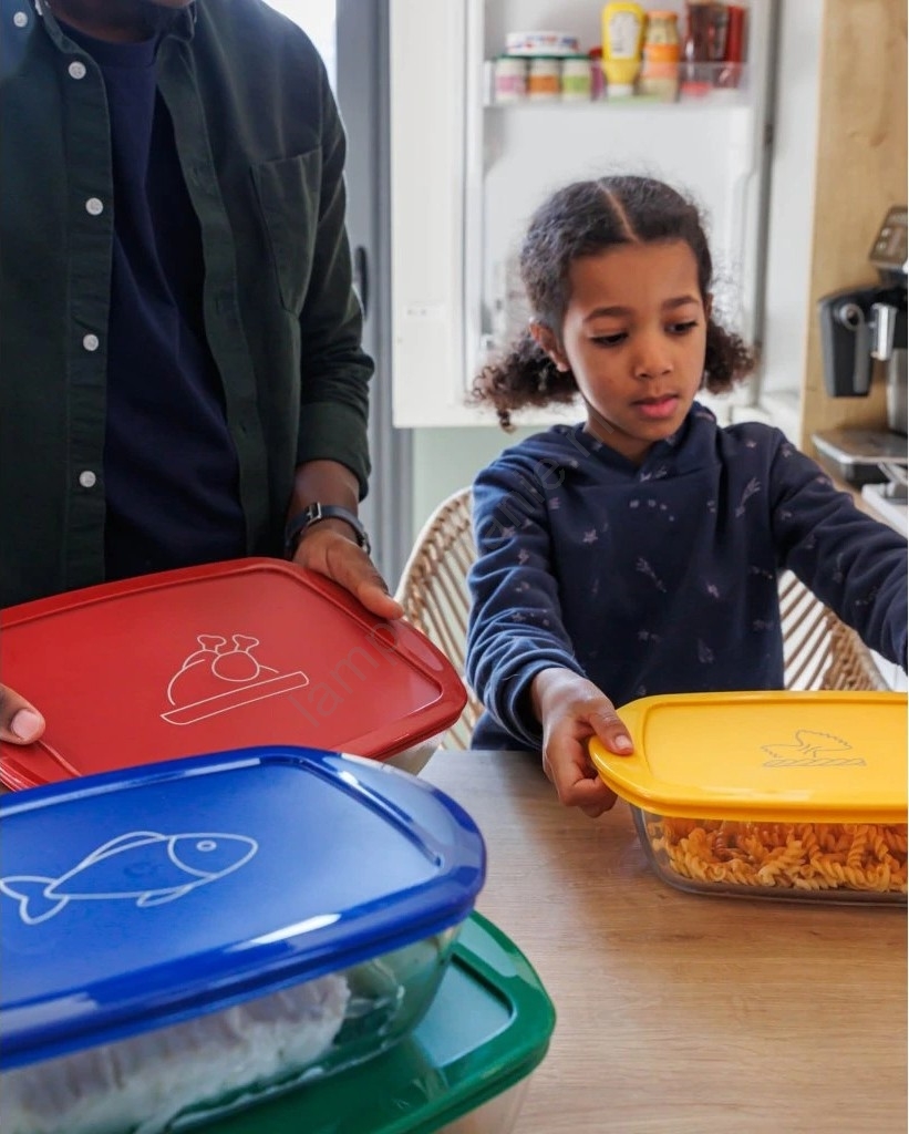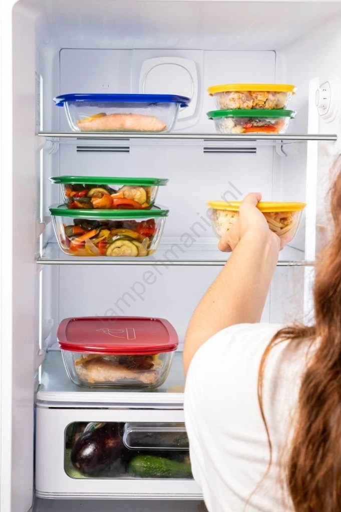 • Dankzij de rechthoekige vorm benut u de ruimte in oven en koelkast efficiënt en het deksel zorgt dat uw gerechten langer vers blijven.
