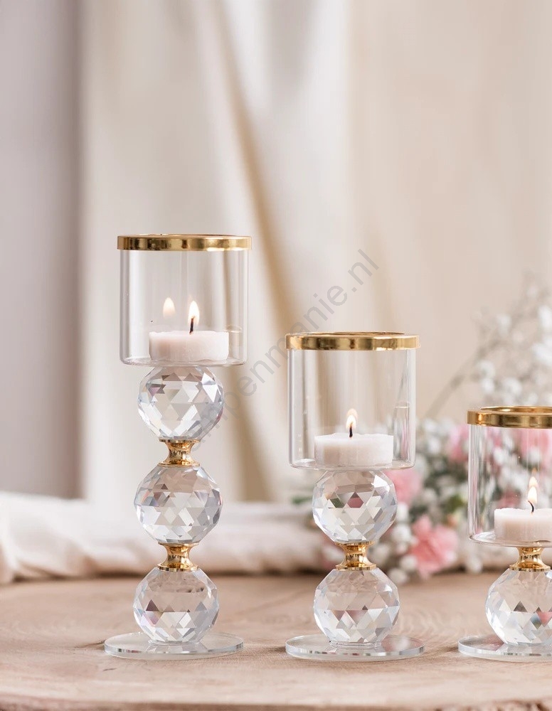 Set van 3 kandelaren, goud/helder