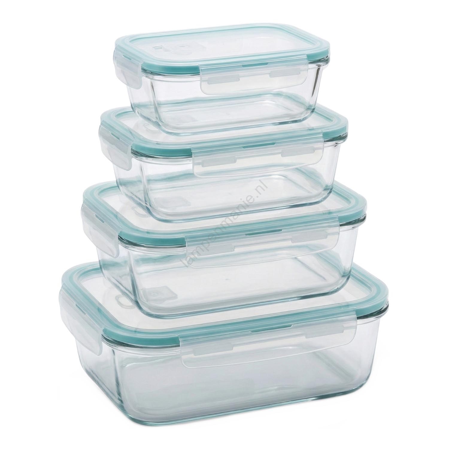 Set van 4 bewaardozen voor voedsel – transparant/mint