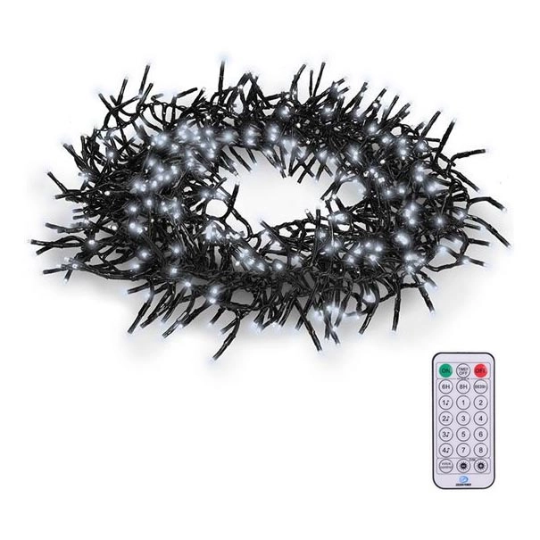 • LED buitenlichtsnoer 576 LEDs / 8 functies, 8 m, IP44, koud wit + afstandsbediening