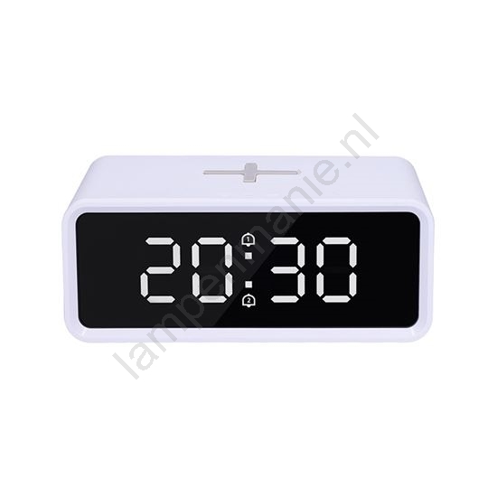 Digitale klok met Qi-draadloze oplader, 230V/CR2032, wit