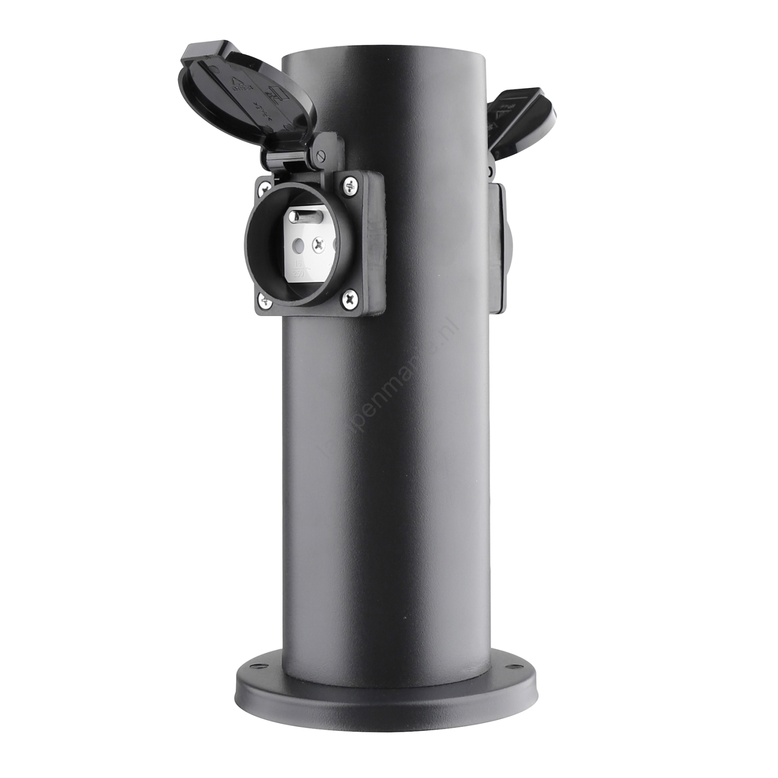 Buitenstopcontactpaal 2-voudig 230V IP44 zwart rond