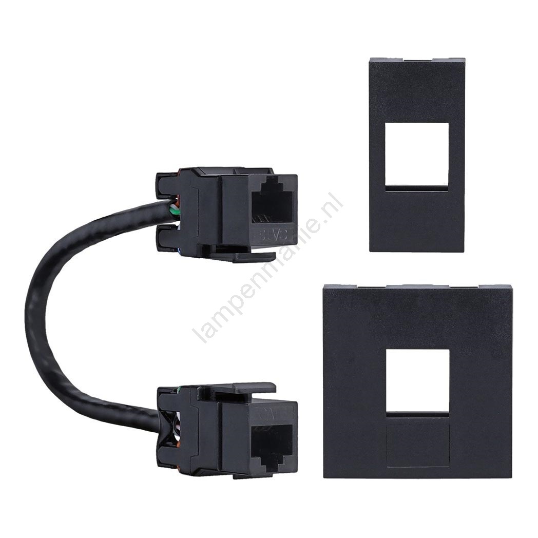 • 1 stuk RJ45: na het verwijderen van het 230V/16A-stopcontact wordt in de lege opening de kabel met RJ45-paneel 45*45mm geplaatst (1x PP128-RJ45).