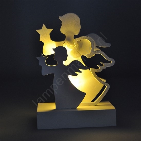 • LED houten kerstdecoratie met engeltjes.
