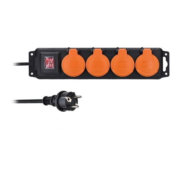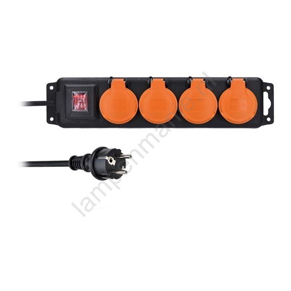 Verlengsnoer met schakelaar 4-voudig 5m IP44