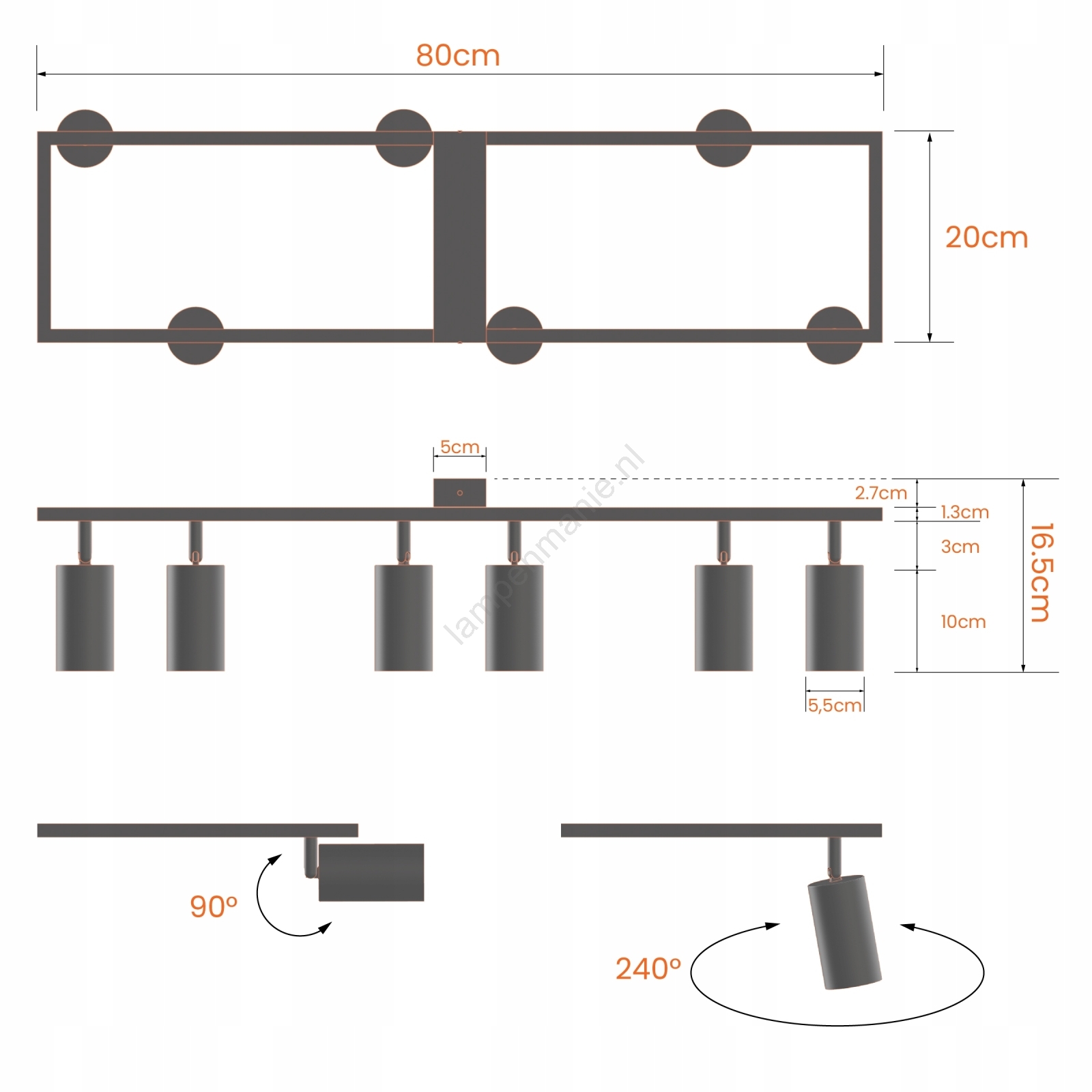 Spotlamp 6xGU10/30W/230V zwart kenmerkt een mooi en functioneel ontwerp.  Voor het licht is een lamp met GU10 fitting geschikt. Hier kunt u andere lampen tegen voordelige prijzen kopen. U heeft een interessante aanwinst voor uw woning.