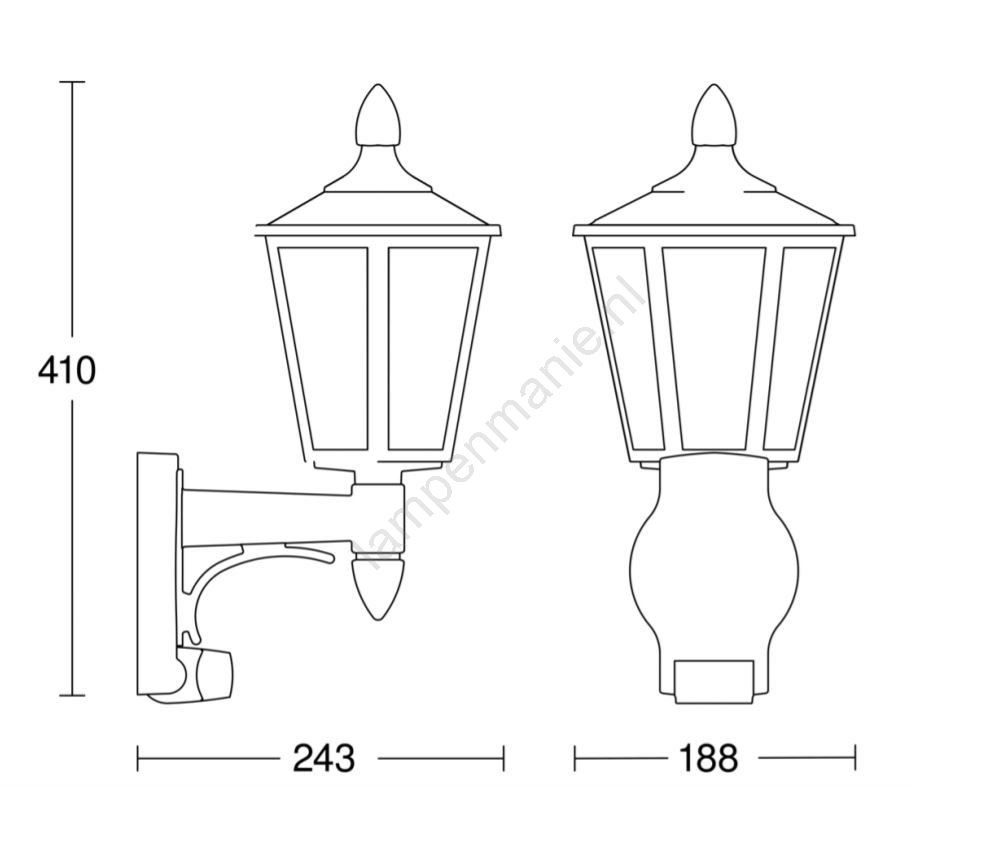 • Klassieke sensor wandlamp voor buitenruimtes.