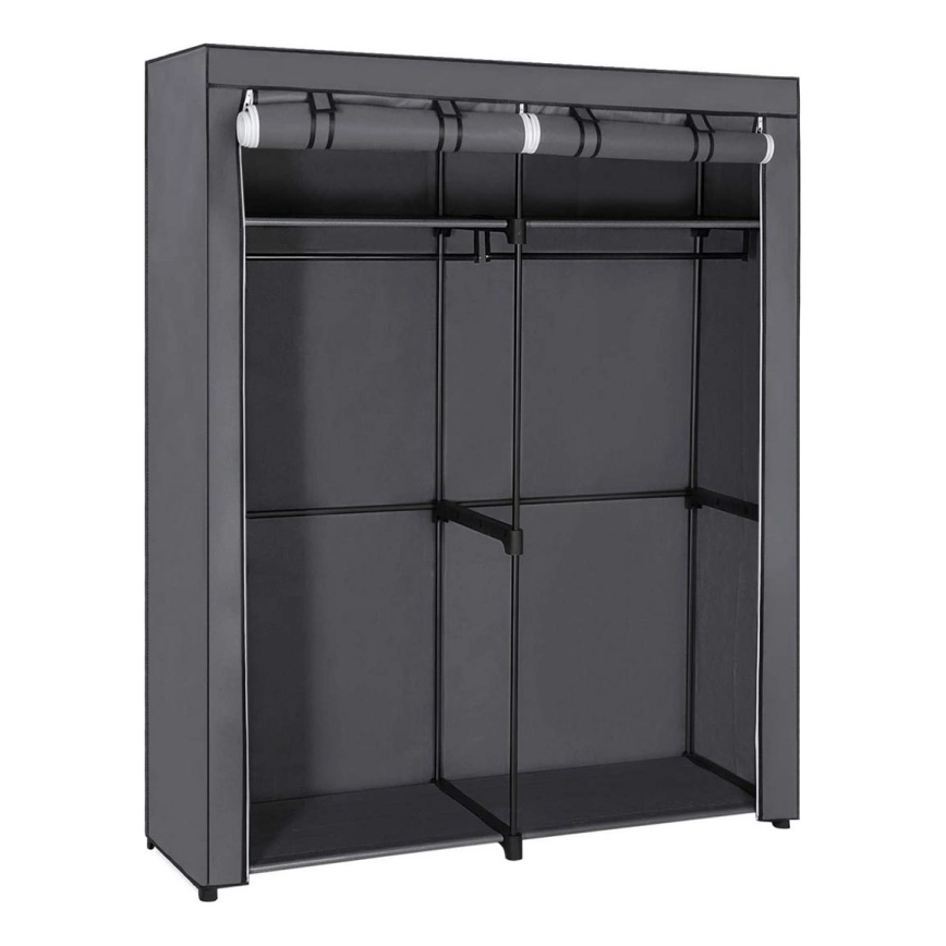 Stoffen kledingkast MATIS 140 x 174 cm, grijs, met planken en kledingstang