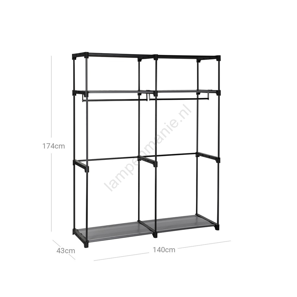 • Stoffen kledingkast met planken en kledingstang MATIS 140x174 cm, zwart