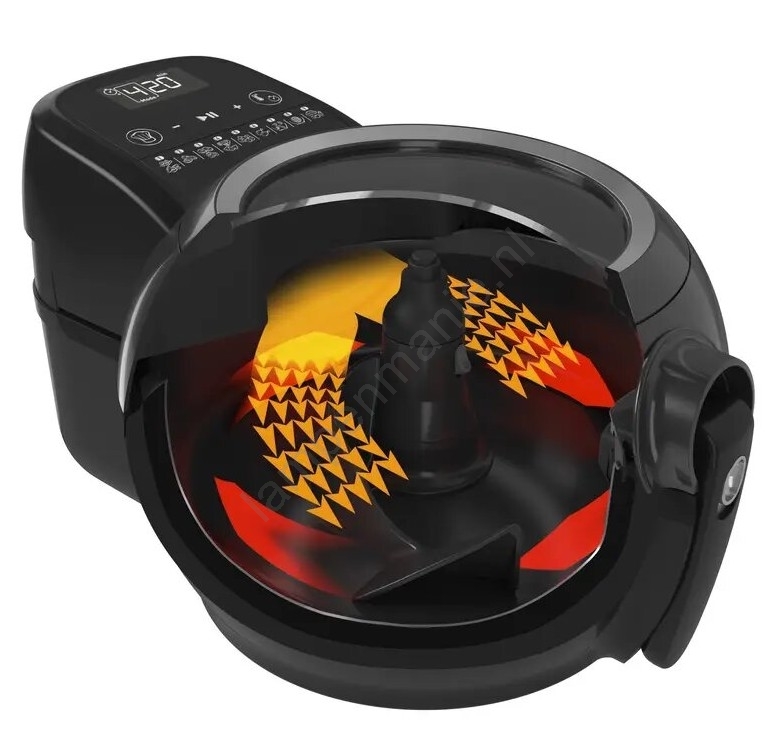 • In tegenstelling tot andere heteluchtfriteuses heeft dit model een roerblad in de kom dat tijdens het bereiden langzaam draait en de ingrediënten mengt.