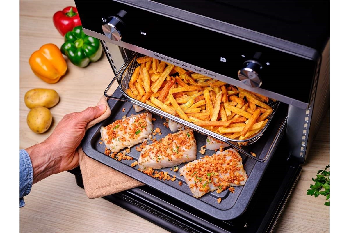 • Grote heteluchtfriteuse en multifunctionele oven in één — obsah 20 l, ideaal voor het bereiden van gerechten voor het gezin of een klein gezelschap.