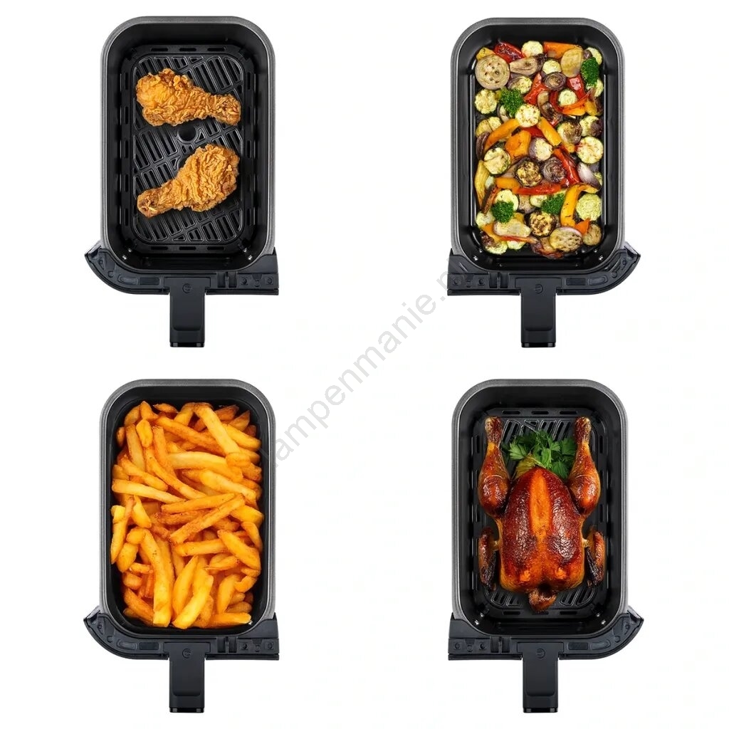 • Onafhankelijke instelling van temperatuur en bereidingstijd voor elke mand.