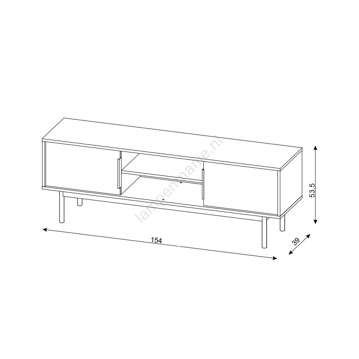 • Het heeft twee gesloten zijvakken en twee open planken, waarvan één in het midden met een kabeldoorvoer.