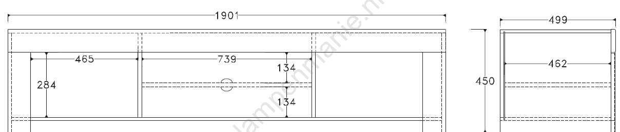 • Het heeft twee gesloten zijvakken en twee open planken, waarvan één in het midden met een kabeldoorvoer.