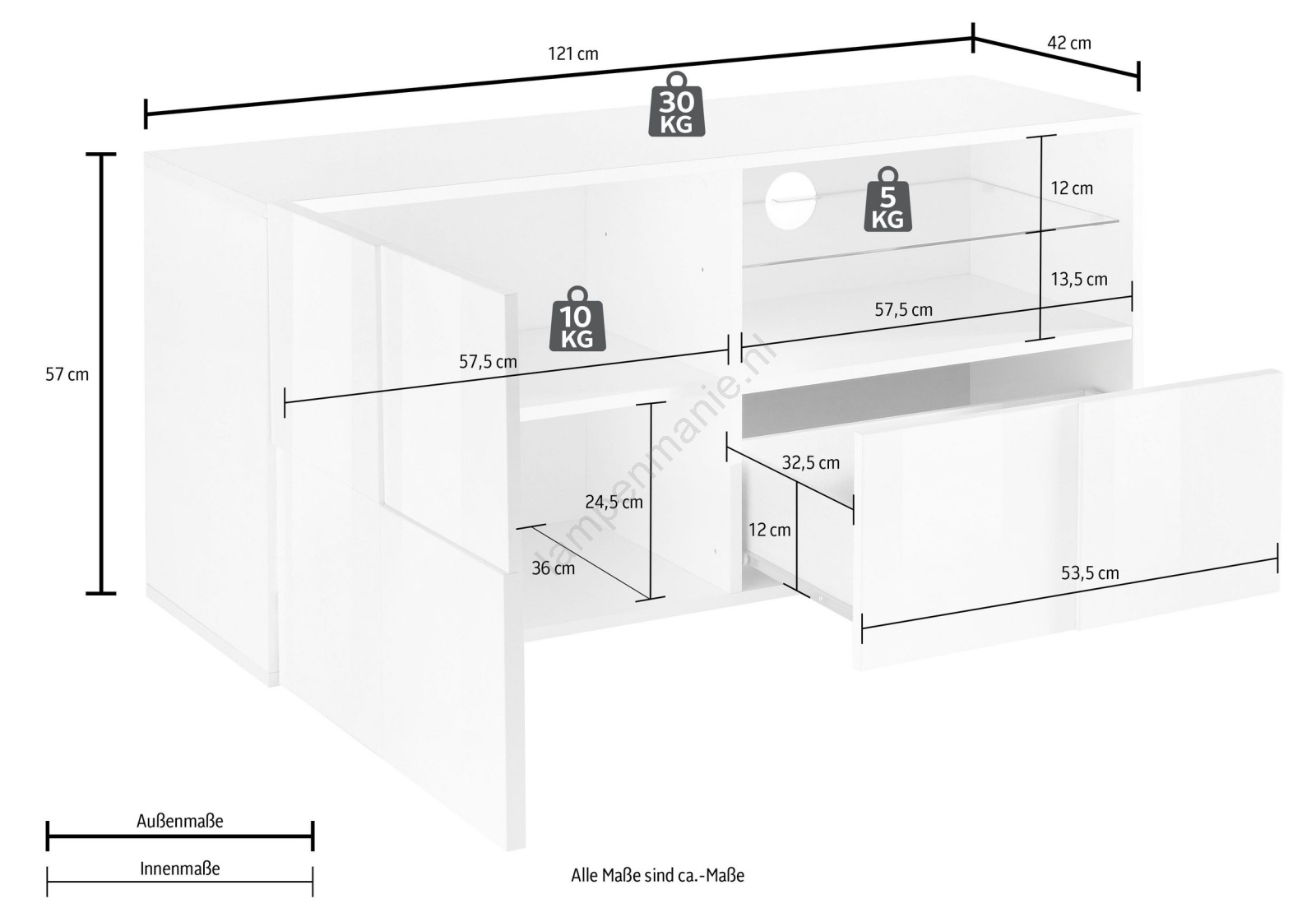• Dankzij de lange rechthoekige vorm is het ideaal voor gebruik onder een wandgemonteerde tv of als moderne opbergoplossing in de woonkamer.