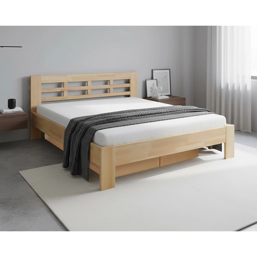 • Tweepersoonsbed van massief hout met opbergruimte ANGELA 180x200 cm beuk