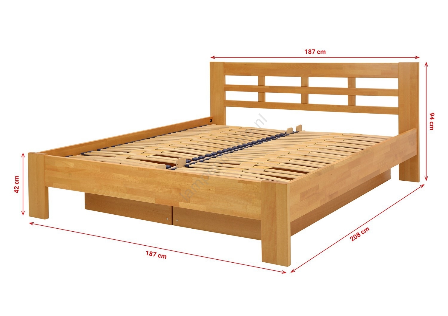 • Het staat op massief houten poten die zorgen voor een hoge stabiliteit van het bed.