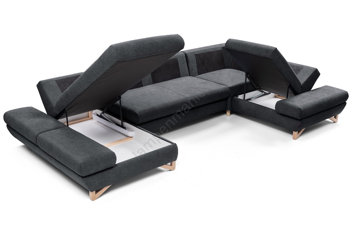 • U-vormige, uitklapbare, gestoffeerde hoekbank met opbergruimte AVESTA, antraciet