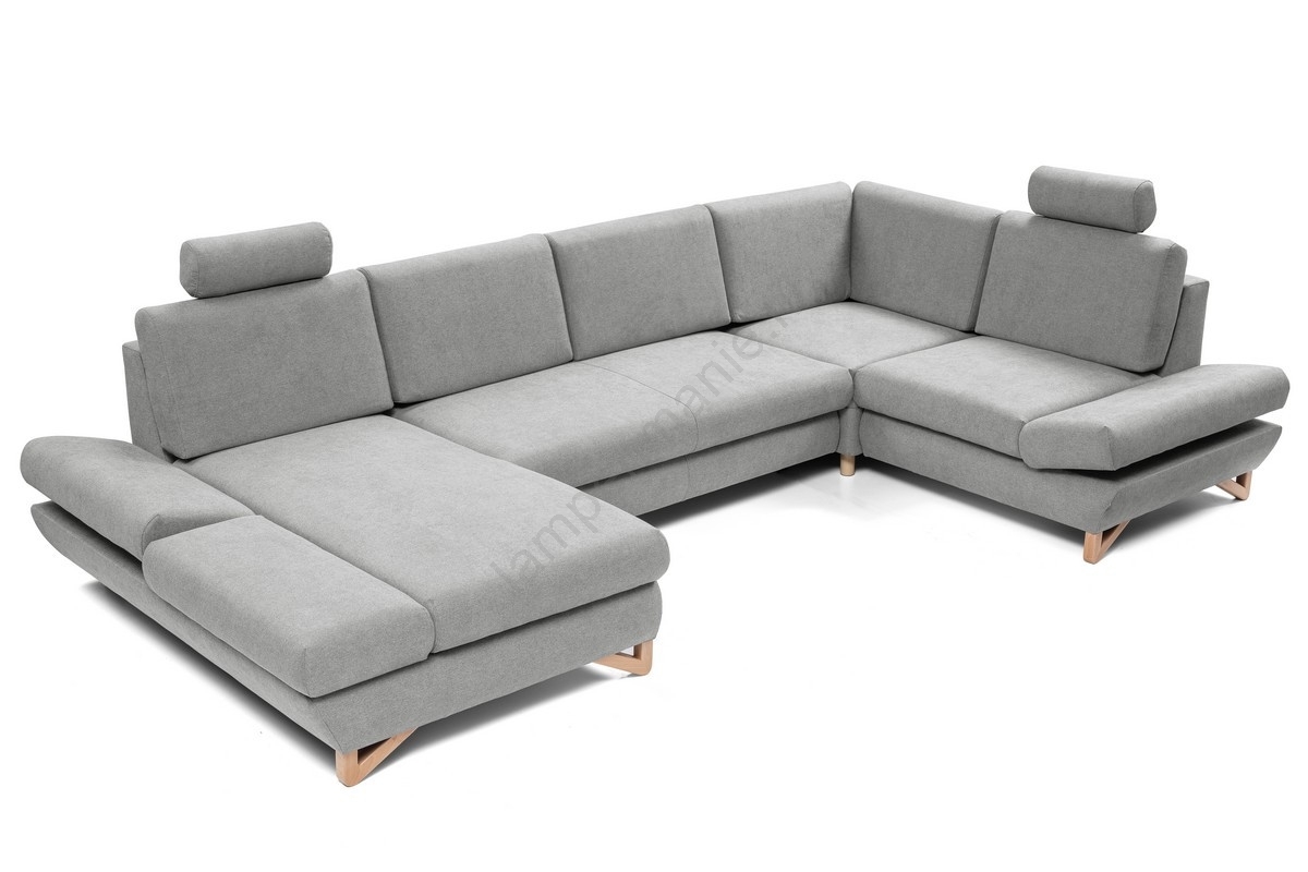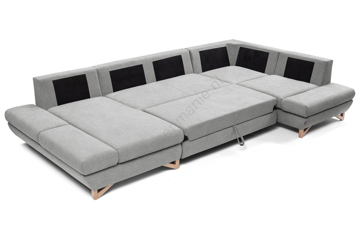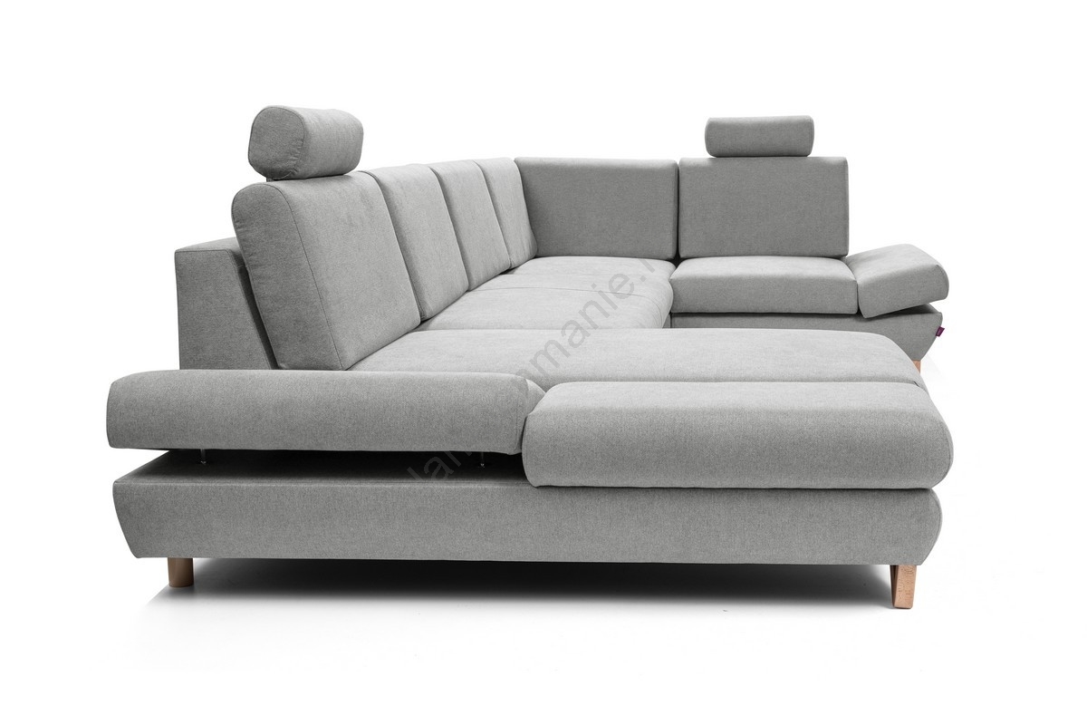 • Uitklapbare gestoffeerde U-vormige hoekbank met opbergruimte AVESTA grijs