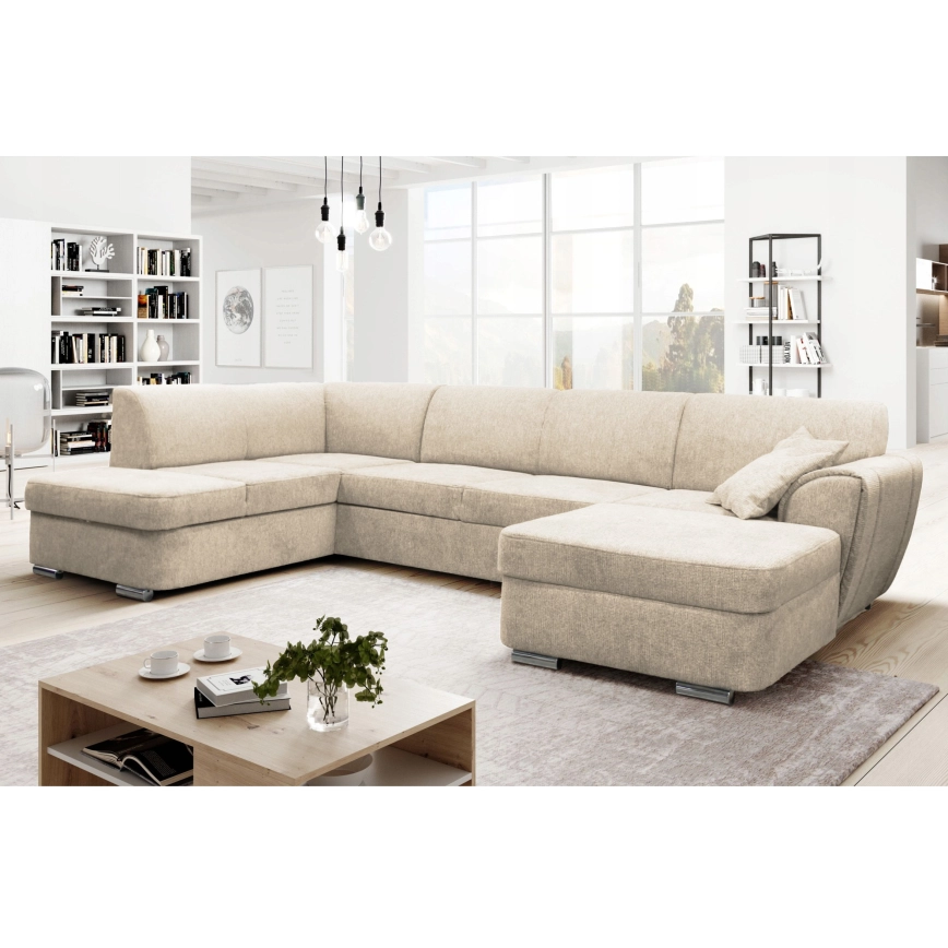 • U-vormige hoekbank SERPA met slaapfunctie en opbergruimte, links, beige
