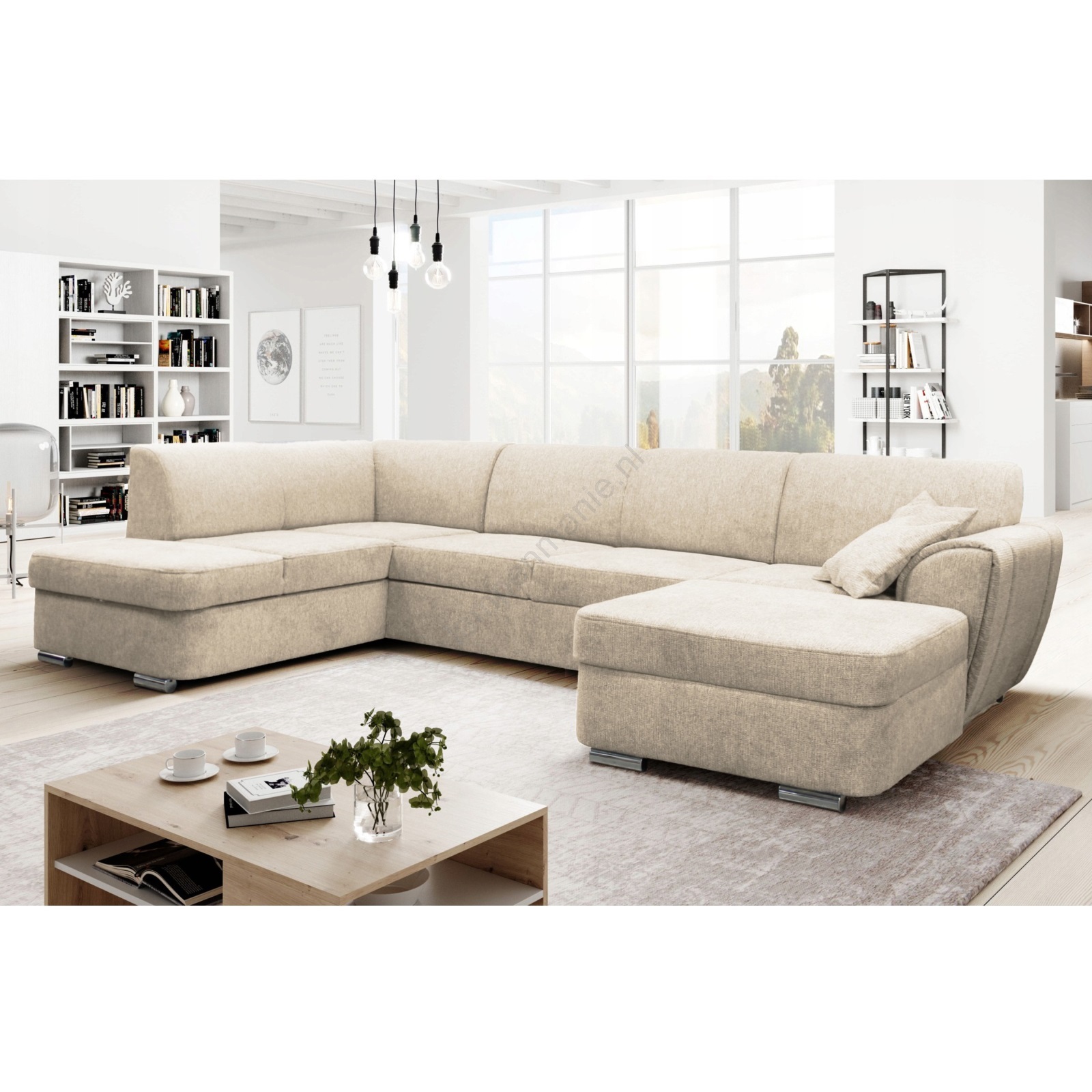 • U-vormige hoekbank SERPA met slaapfunctie en opbergruimte, rechts, beige