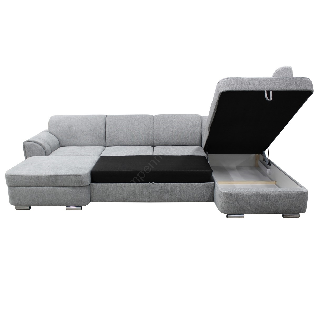 • Uitklapbare U-vormige hoekbank SERPA, links, grijs, met opbergruimte