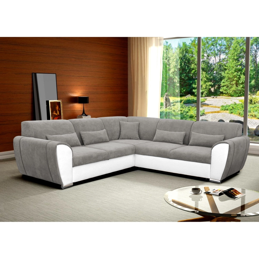 • L-vormige hoekbank VISEU met slaapfunctie en opbergruimte, links, grijs/wit