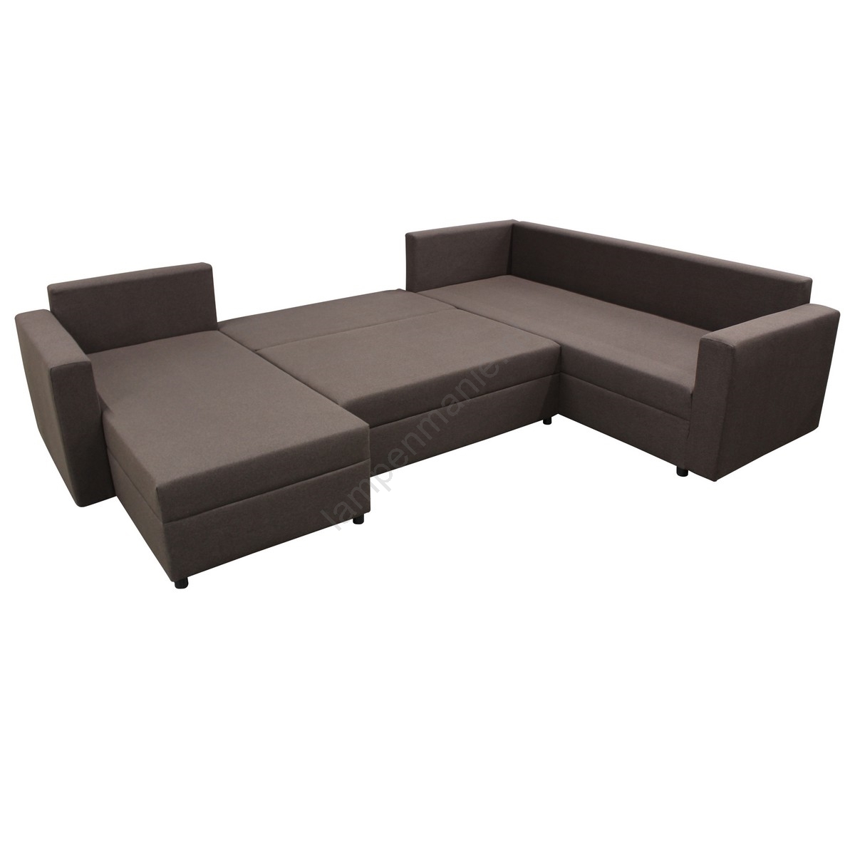 Universele U-vormige hoekbank SEYA met uitschuifbare slaapfunctie en opbergruimte, bruin