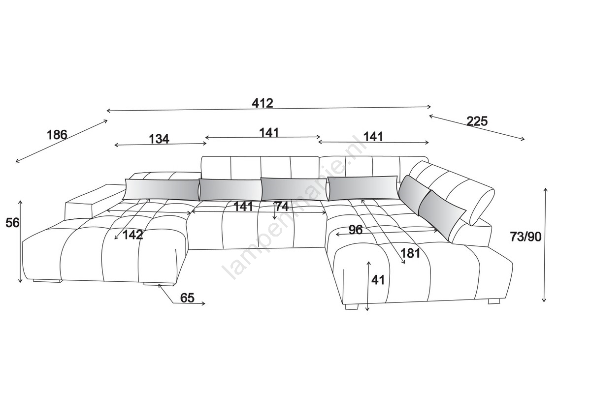 • Moderne U-vormige zithoekbank combineert stijlvol design met maximaal comfort.