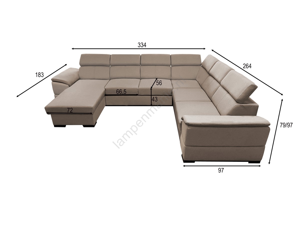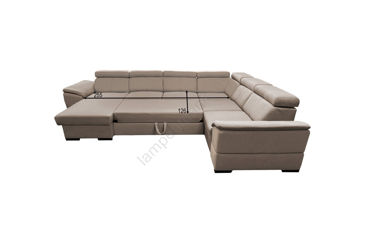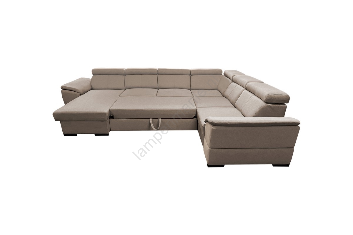 • Uitklapbare hoekbank in U-vorm met omkeerbare hoek en opbergruimte GRANADA beige