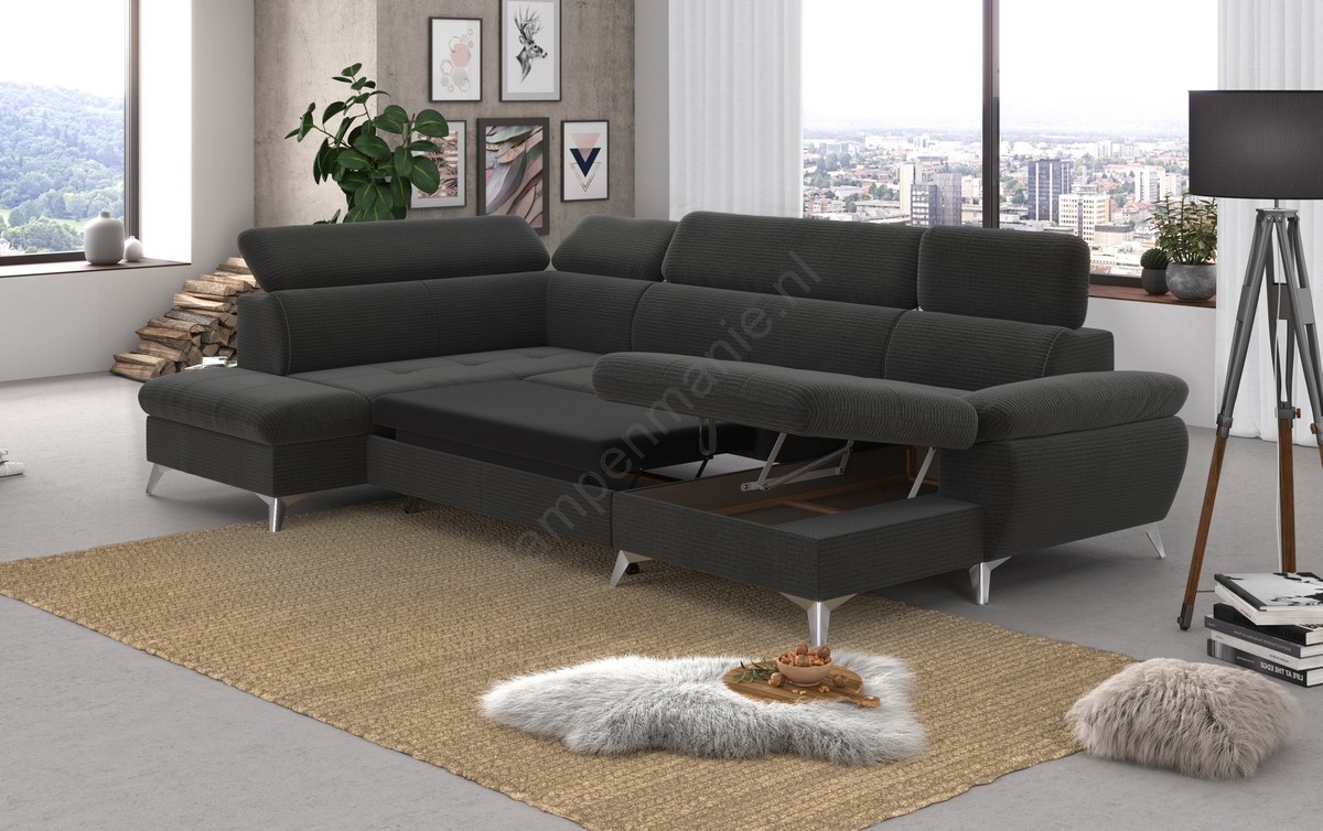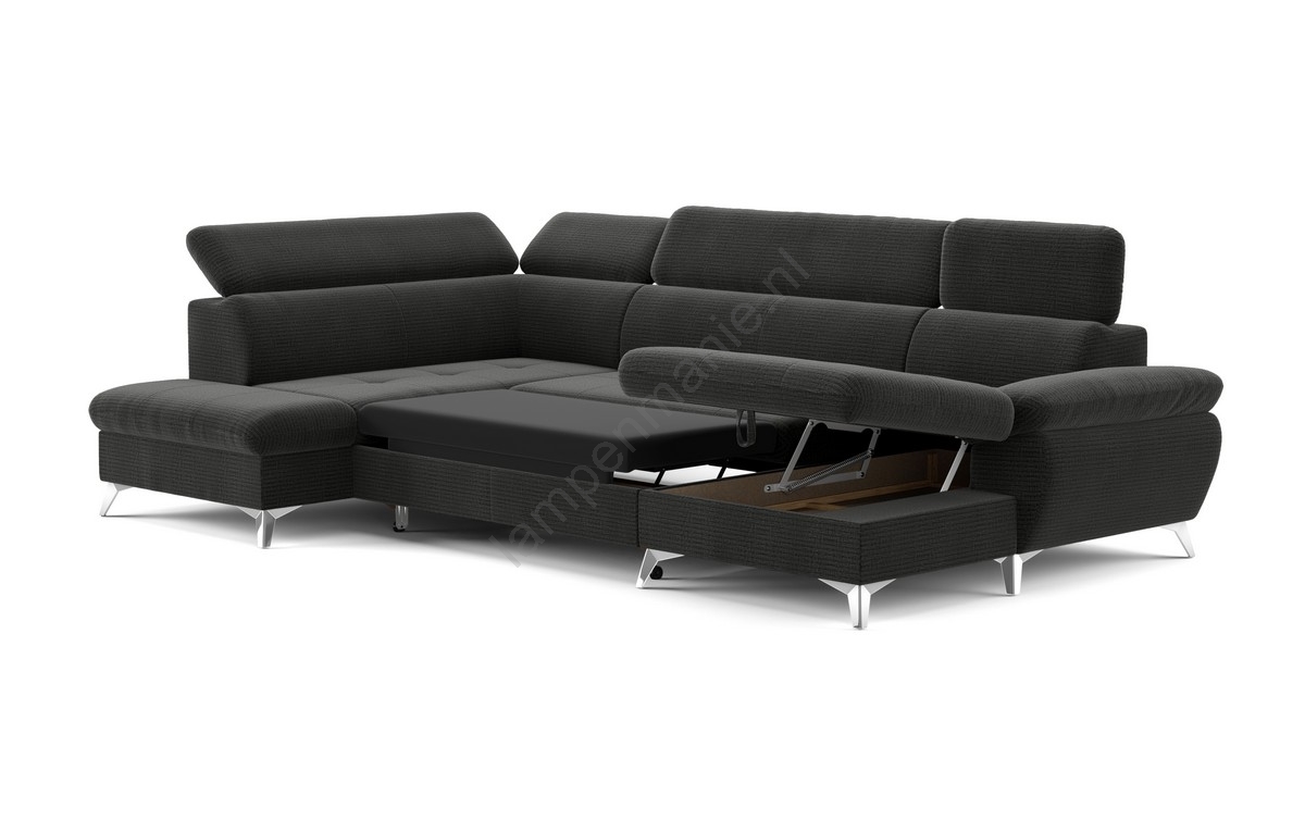 U-vormige hoekbank met opbergruimte CATANIA links, grafietkleurig