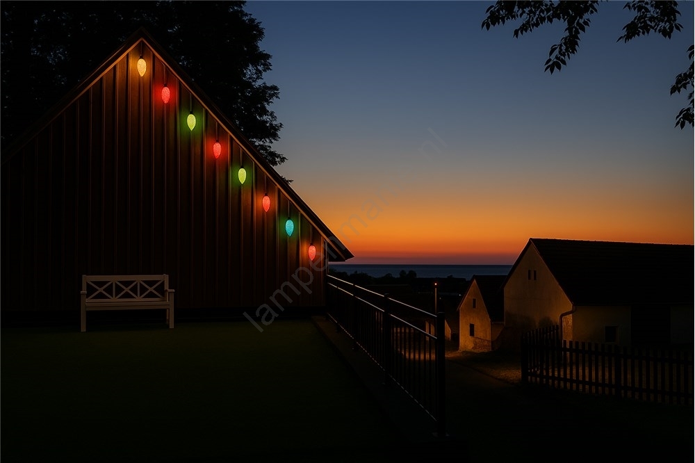 Uitbreidingsset LED-buitenslinger CONE FILAMENT 20xE10 14m gekleurd/warmwit IP44, Gemaakt in de EU