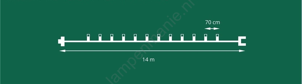 • Afstand tussen de lampjes: 70 cm.