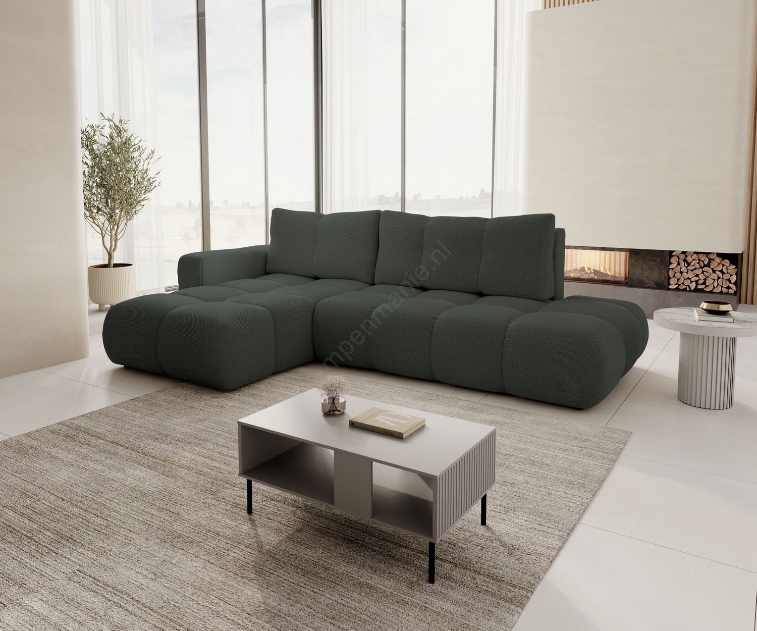 • Moderne uitschuifbare hoekbank ALMADA (linker hoek) je de ideale keuze voor wie op zoek is naar een combinatie van stijl, comfort en functionaliteit.