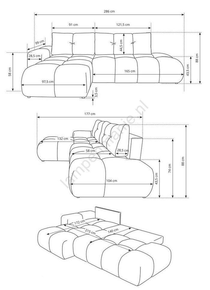 • De bank heeft een ruim opbergvak voor het opbergen van beddengoed en andere seizoensgebonden spullen.