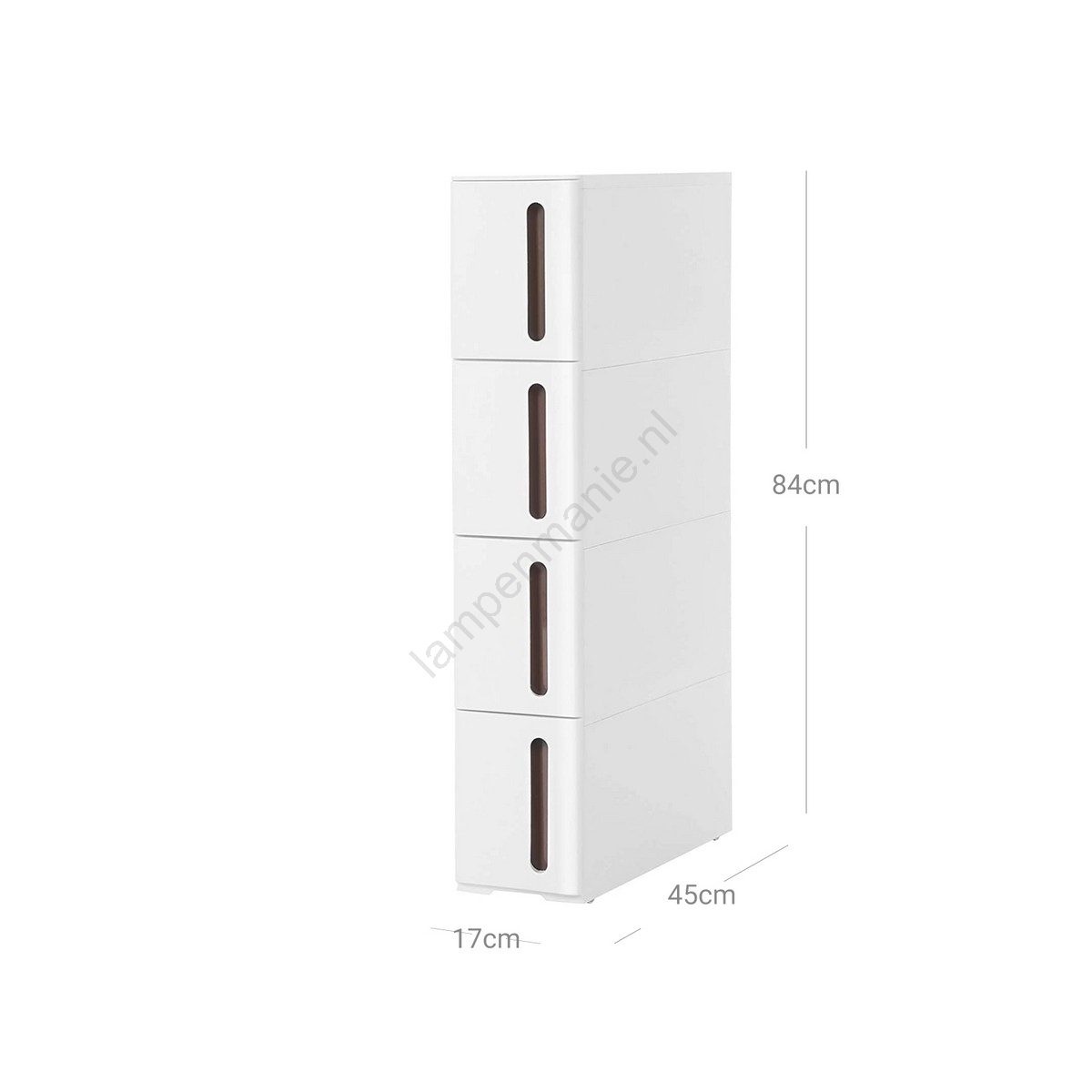 • 4 diepe uittrekbare lades bieden een opbergruimte van meer dan 28 l; in tegenstelling tot houten of metalen rekken zijn deze kunststof lades roestvrij, ook geschikt voor de badkamer.