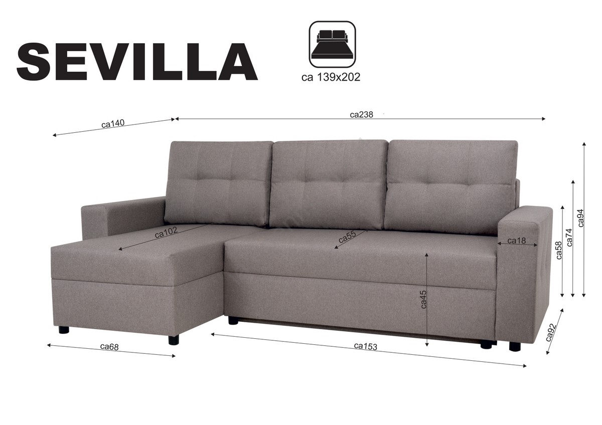 • Universele hoekbank met slaapfunctie en opbergruimte SEVILLA grijs