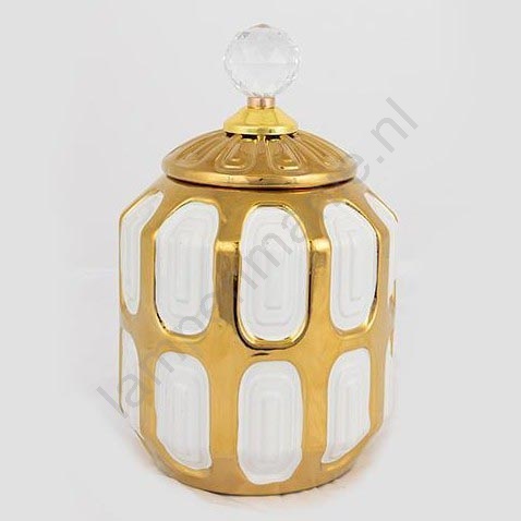 • Elegante vaas ontworpen voor interieurdecoratie, met een afneembaar deksel.