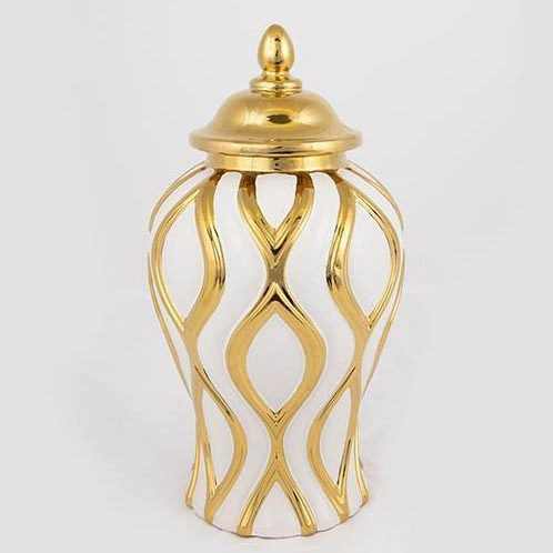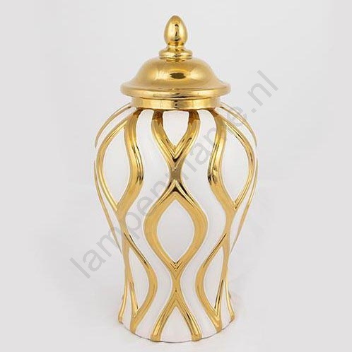 • De gouden en witte delen hebben een glanzende glazuur die de vaas een luxe en verfijnde uitstraling geeft.