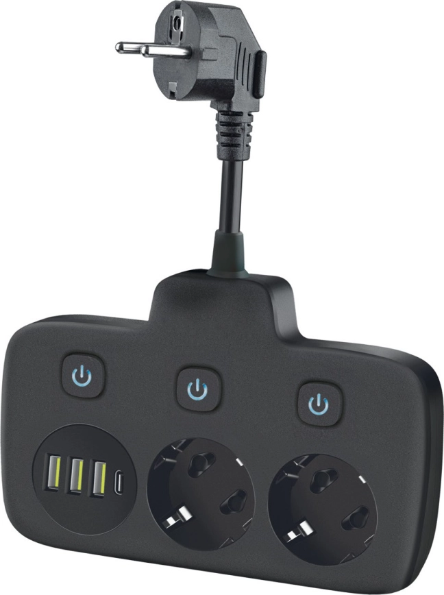 Stekkerdoos met schakelaar LINEA 2x230V + 4x USB-A/C SCHUKO zwart
