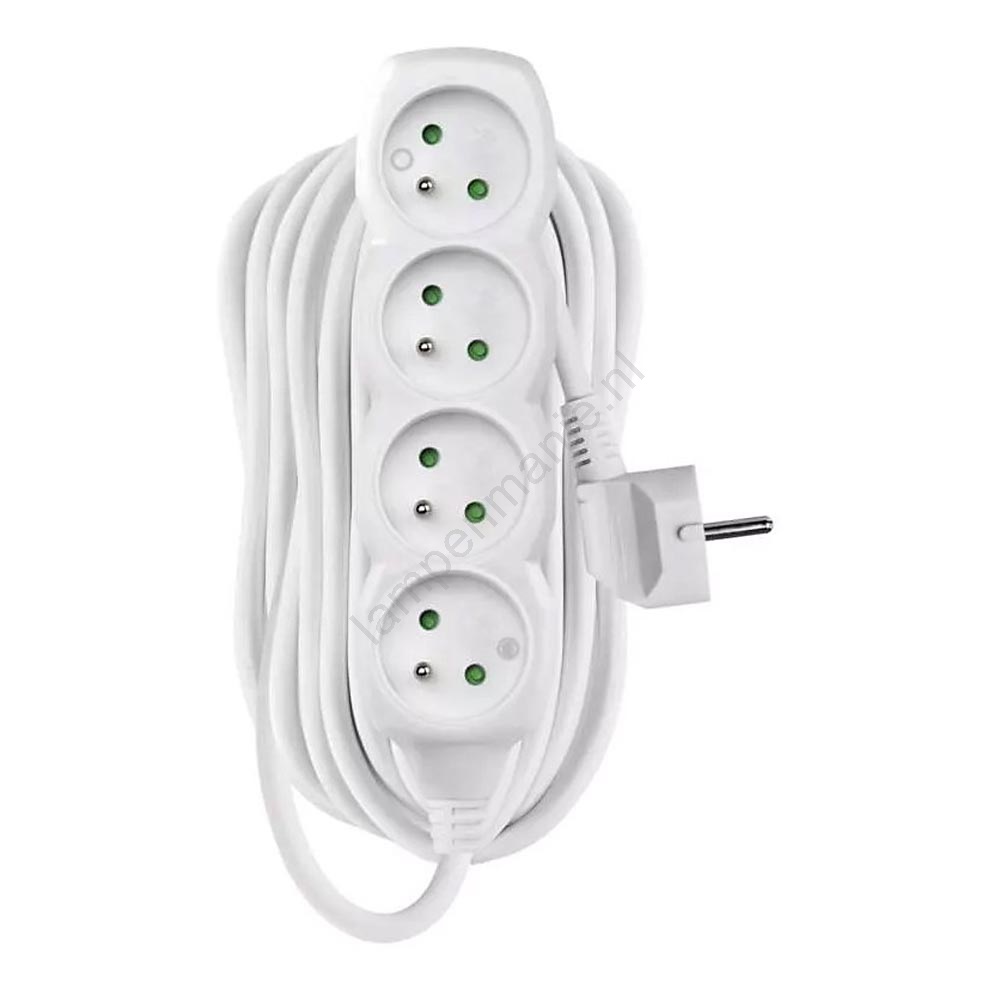 Verlengsnoer 4-voudig 10m wit