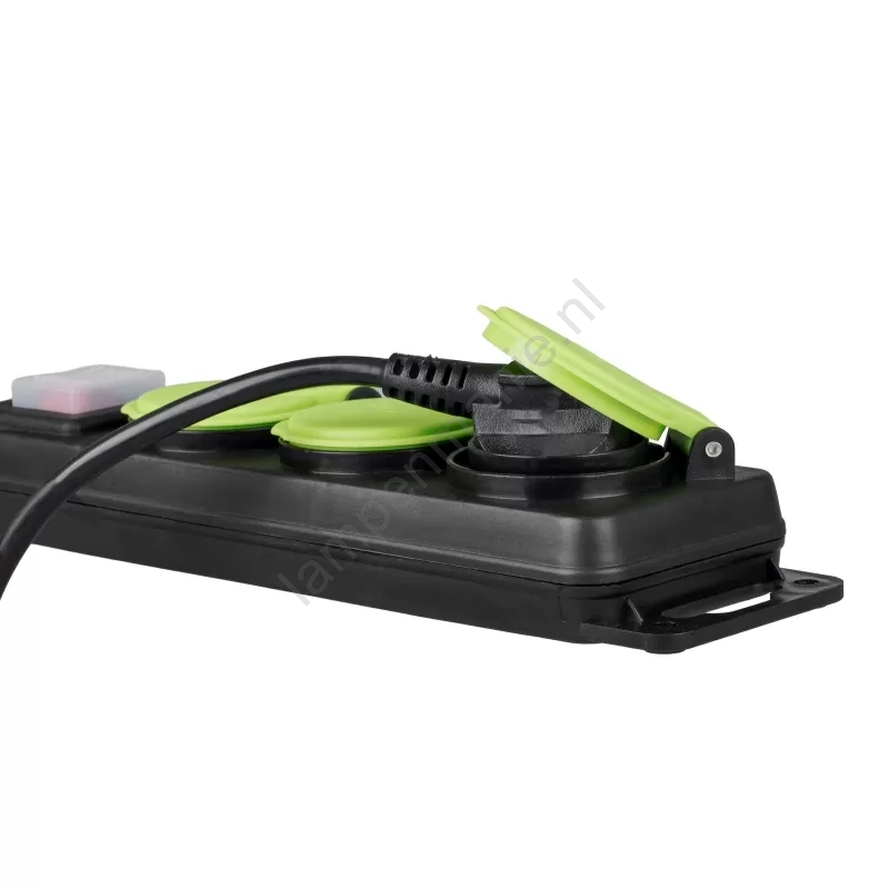 • Automatisch sluitende veerafsluitingen in de stopcontacten beschermen tegen vocht, regen en vuil.